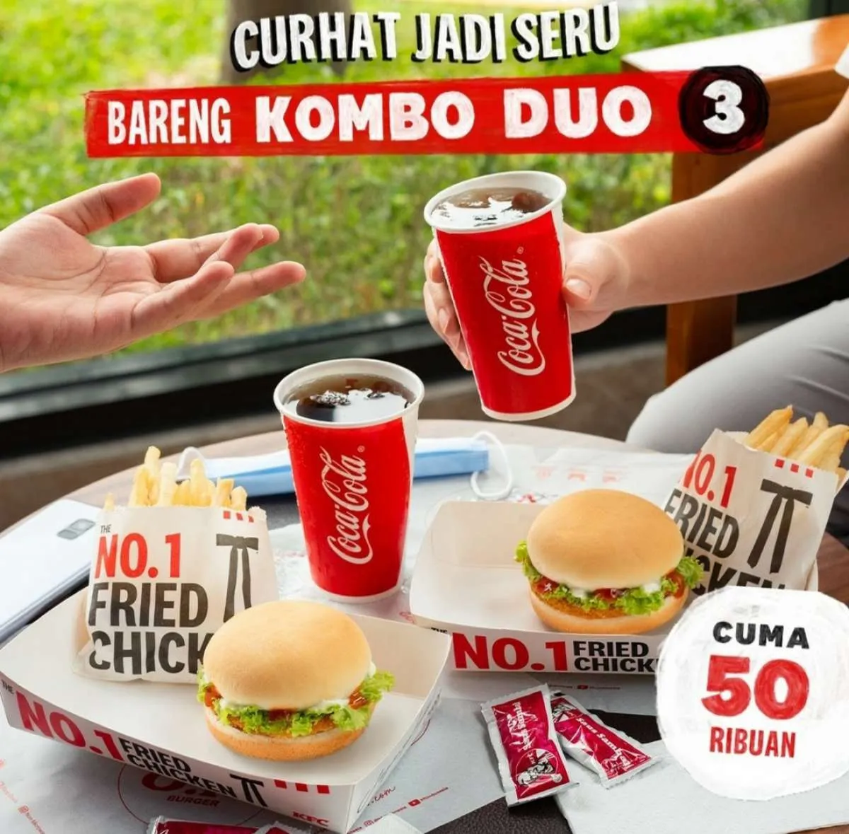 - Kombo Duo 2: 2 Krunchy Burger, 2 Kentang Goreng, dan 2 Coca-cola Reg.