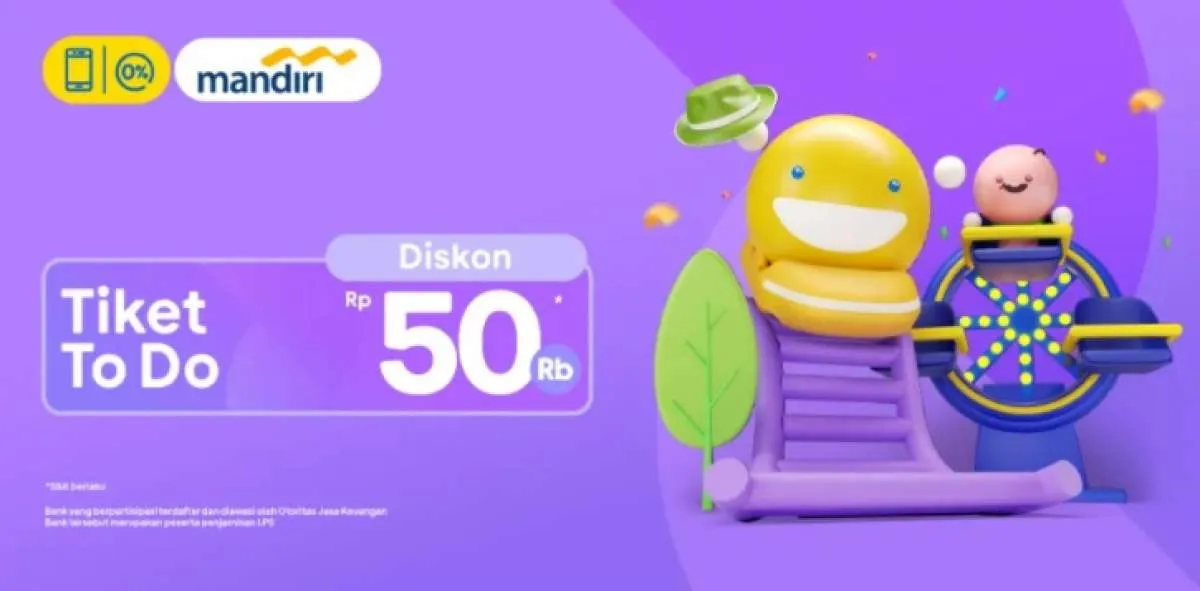 MOMSMONEY.ID - Moms jadikan liburan anda dan keluarga menjadi liburan terbaik. Bagi anda pemiliki kartu kredit bank Mandiri, ada diskon Rp50.000 untuk produk To Do. Selagi masih gajian, kesempatan anda untuk menggunakan promo menarik ini. Promo ini belangsung hingga 6 Oktober 2021 dan bisa digunakan kapan pun. Yuk, segera buka aplikasi tiket.com anda!