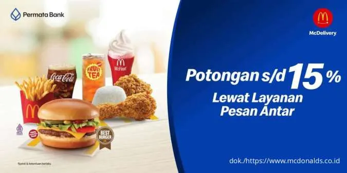 Selain itu, Anda juga bisa menikmati promo McDelivery dengan Kartu Kredit dan Debit Plus Permata yang berikan diskon hingga 15%.