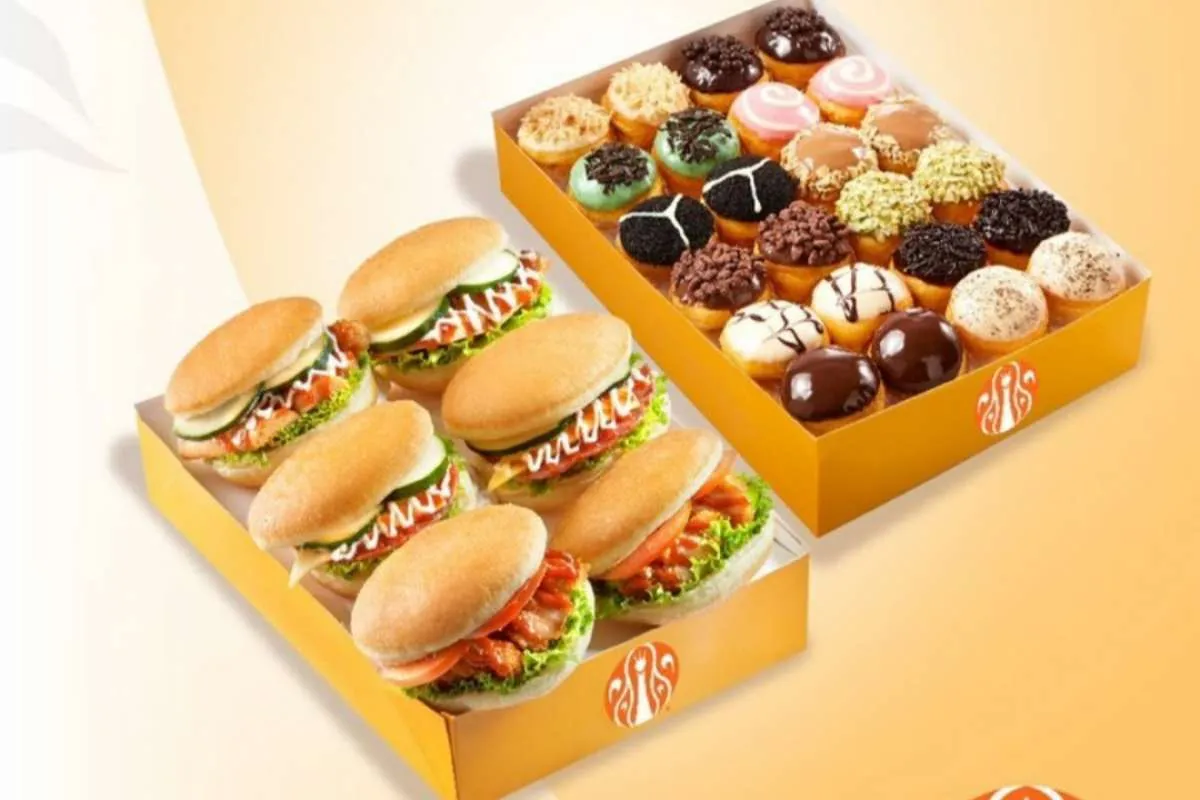 - ½ Lusin JClub (Burger) + ½ Lusin Donuts; atau