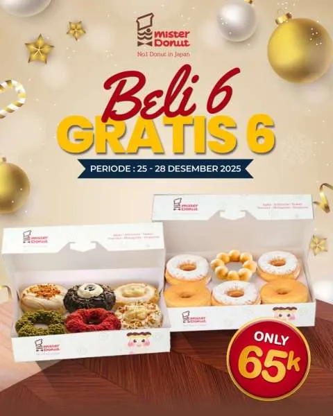 MOMSMONEY.ID - Menuju akhir tahun ini, Mister Donut hadirkan promo spesial beli 6 gratis 6 selama periode 25-28 Desember 2025. Anda bisa dapat 12 Donuts favorit dengan harga yang lebih hemat, lo.