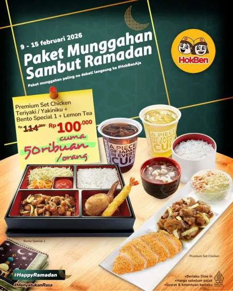 MOMSMONEY.ID - Menyambut bulan suci Ramadhan, ini saatnya untuk munggahan spesial bareng orang terdekat. Melalui promo Paket Munggahan Ramadhan dari HokBen, Anda bisa menikmati menu komplit mulai Rp 50.000-an saja per orang.