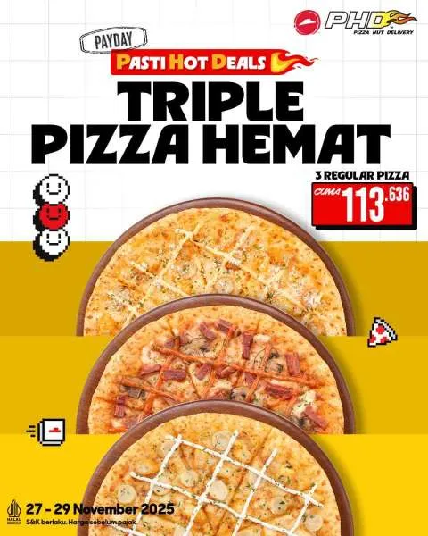 Untuk menikmati promonya, Anda bisa langsung pesan melalui www.pizzahut.co.id atau aplikasi Pizza Hut Indonesia. Ingat ya, promonya hanya berlaku dari 27-29 November 2025 saja. Jadi, pastikan Anda tidak melewatkannya.
