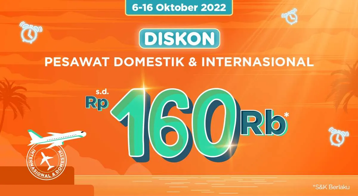 Serbu diskon tiket pesawat spesial dari berbagai partner hingga Rp160.000*, dengan menggunakan kode kupon di bawah ini: