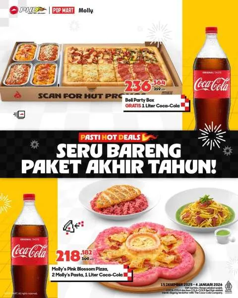 Selain itu, di awal tahun 2026 ini Anda masih bisa menikmati promo Paket Akhir Tahun dari PHD. Tersedia dua paket spesial yang hemat banget untuk makan rame-rame, sudah lengkap dengan gratis satu liter Coca-Cola.