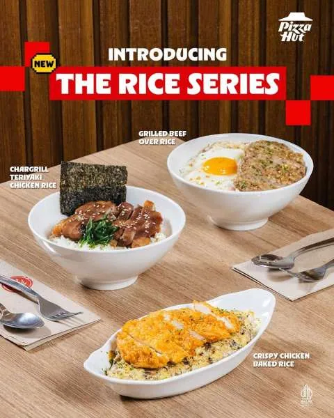 Selain itu, ada yang baru di Pizza Hut lo. Buat Anda yang makannya tim nasi, wajib banget cobain menu yang satu ini. The Rice Series hadir dengan tiga varian spesialnya.