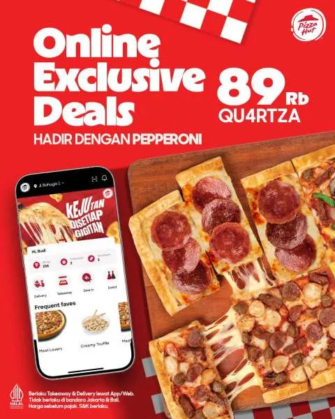 MOMSMONEY.ID - Rabu jadi momen yang ditunggu-tunggu oleh para pecinta Pizza Hut. Ya, karena di hari ini ada promo Online Exclusive Deals untuk menikmati QU4RTZA Pizza hanya Rp 89.000 saja.