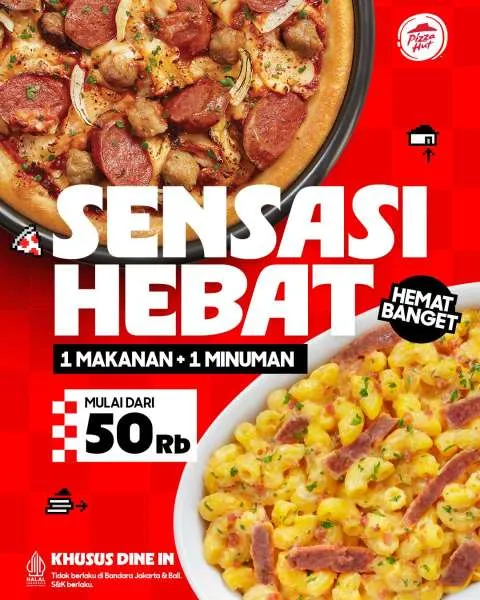 Selain itu, Pizza Hut juga ada promo Sensasi Hebat dengan paket hematnya mulai Rp 50.000-an saja. Anda bisa memilih menu favorit yang sudah lengkap dengan minuman juga lo.