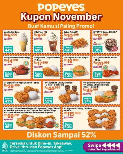 Dikutip dari Instagram Popeyes Indonesia, berikut daftar menu di promo Kupon November yang bisa Anda nikmati: