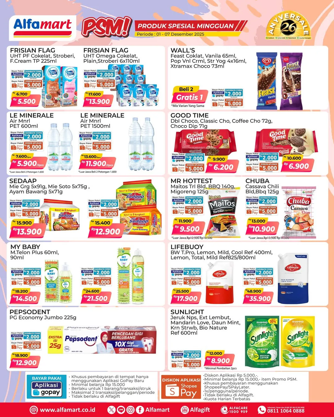 Selama 1-7 Desember 2025, ada promo PSM (Produk Spesial Mingguan) dari Alfamart yang menawarkan berbagai produk dengan harga jauh lebih ekonomis.