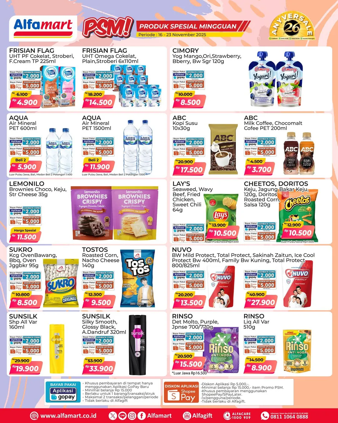 Selama 16-23 November 2025, ada promo PSM (Produk Spesial Mingguan) dari Alfamart yang menawarkan berbagai produk dengan harga jauh lebih ekonomis.