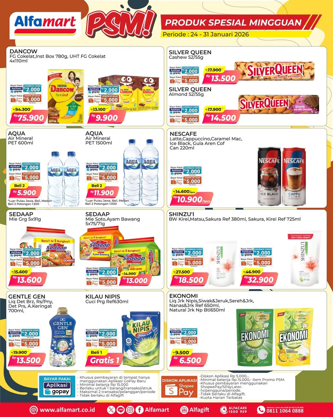 Selama 24-31 Januari 2026, ada promo PSM (Produk Spesial Mingguan) dari Alfamart yang menawarkan berbagai produk dengan harga jauh lebih ekonomis.