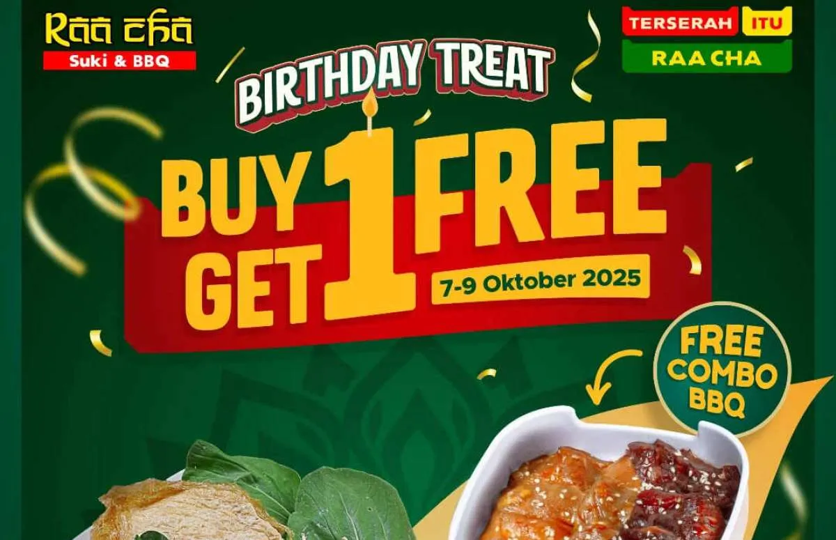Selain itu, promo Birthday Offer dari Raa Cha juga siap memanjakan Anda hingga 7 November 2025. Nikmati menu-menu spesial mulai Rp 4.000-an saja.