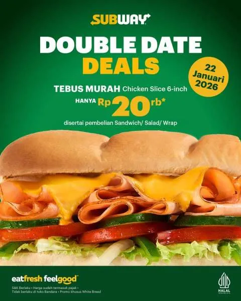 MOMSMONEY.ID - Kabar spesial hari ini untuk pecinta Subway! Ada promo Subway Double Date Deals yang khusus hadir di tanggal 22 Januari 2026. Anda bisa tebus murah Chicken Slice seharga Rp 20.000 saja lo.