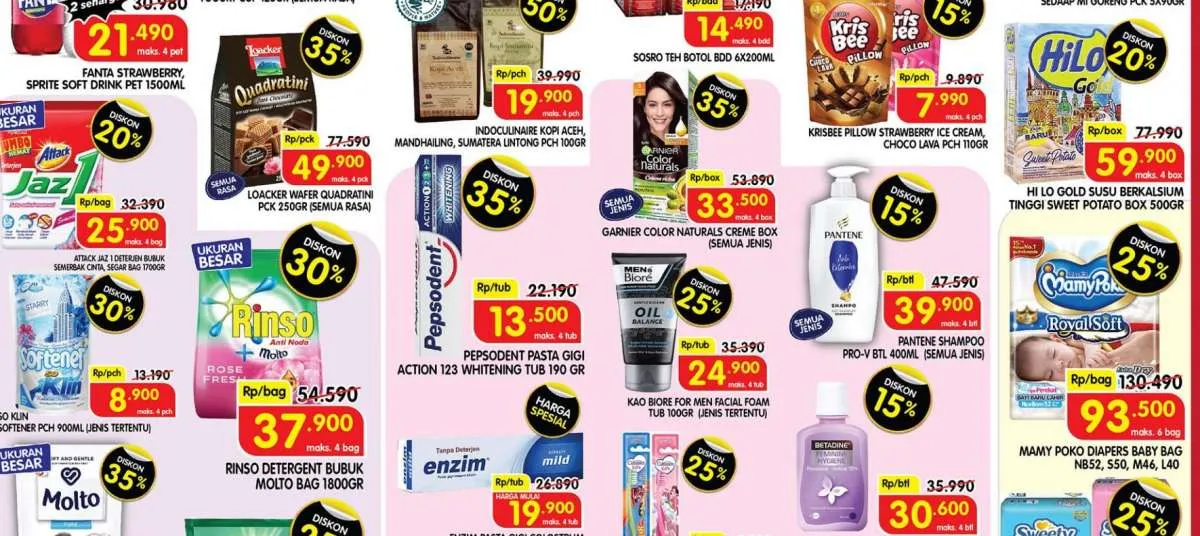 Promo ini menawarkan aneka bahan makanan, minuman, produk perawatan tubuh, hingga kebutuhan si kecil yang dibanderol dengan Diskon s/d 50%.