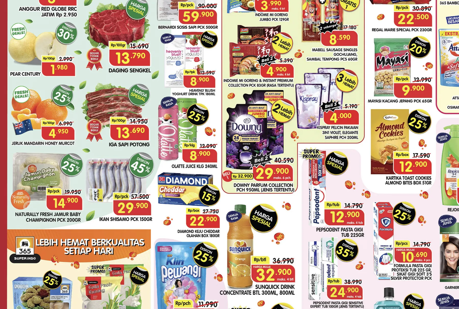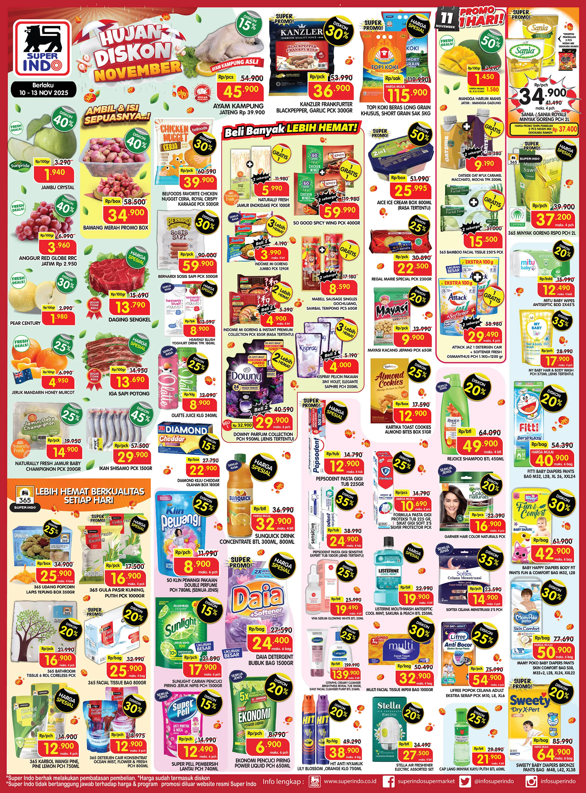 Pada awal pekan ini, 10-13 November 2025, di Superindo terdekat juga ada promo Superindo Weekday yang menawarkan Diskon sampai 50% untuk berbagai produk. Berikut beberapa di antaranya:
