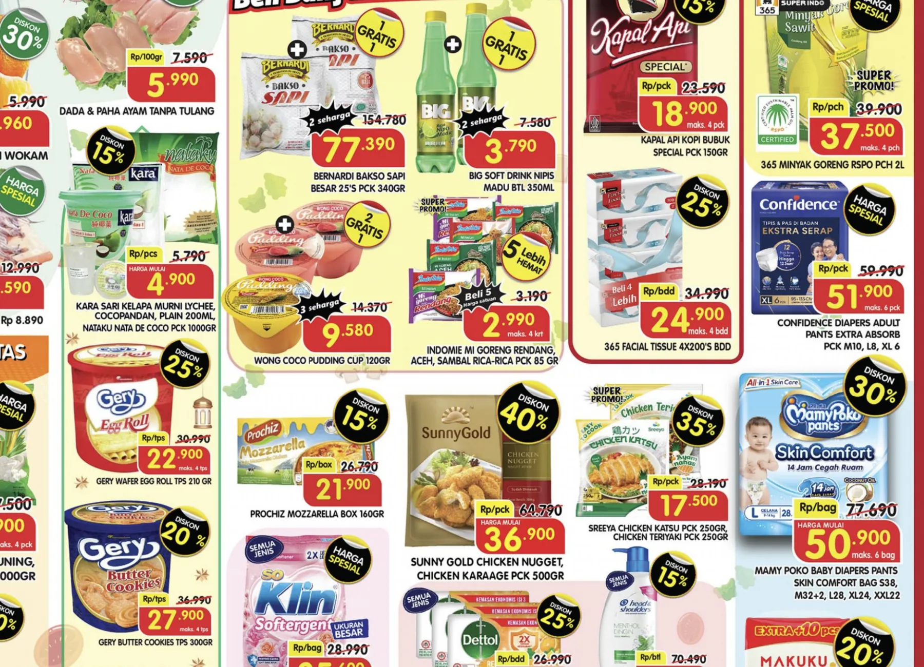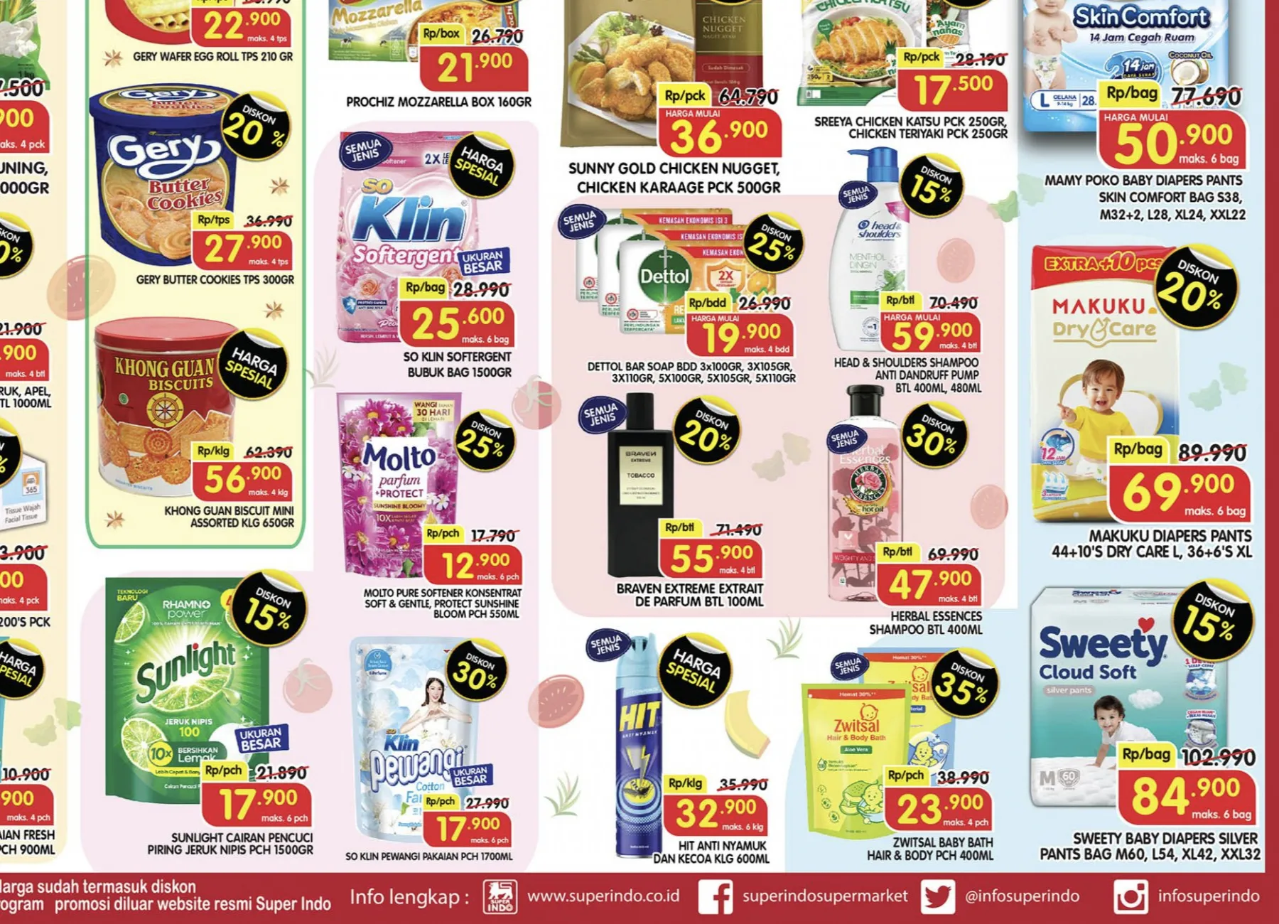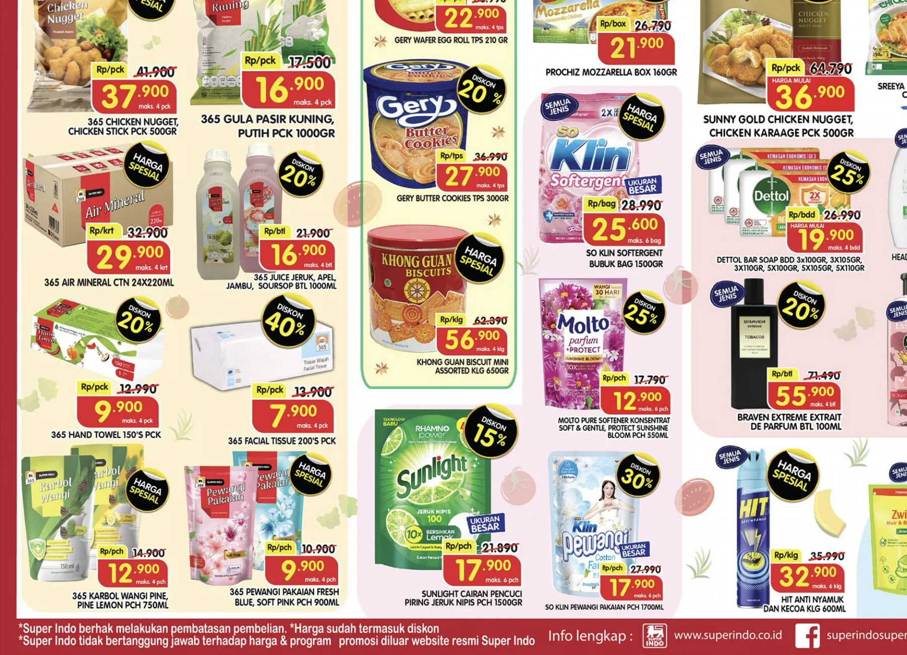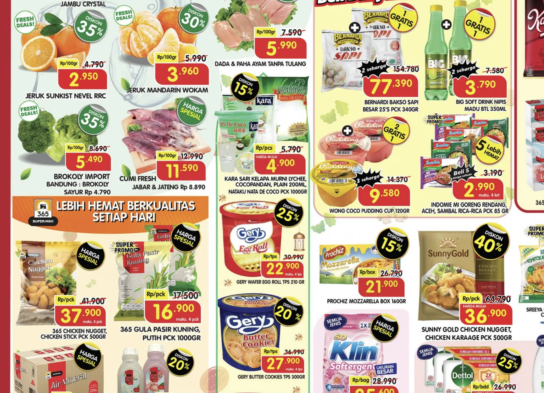 Harga Spesial di promo Superindo Weekday hari ini ada Cumi Fresh, Aneka Produk 365, Khong Guan, Daging Rendang, So Klin Softergent, Sumo Beras Khusus Merah, HIT Anti Nyamuk, dan Confidence Diapers Adult.