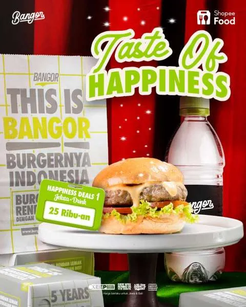 Dikutip dari Instagram @burgerbangor, promo Taste of Happiness menyediakan dua paket hemat serba Rp 25.000-an yang bisa Anda nikmati berikut:
