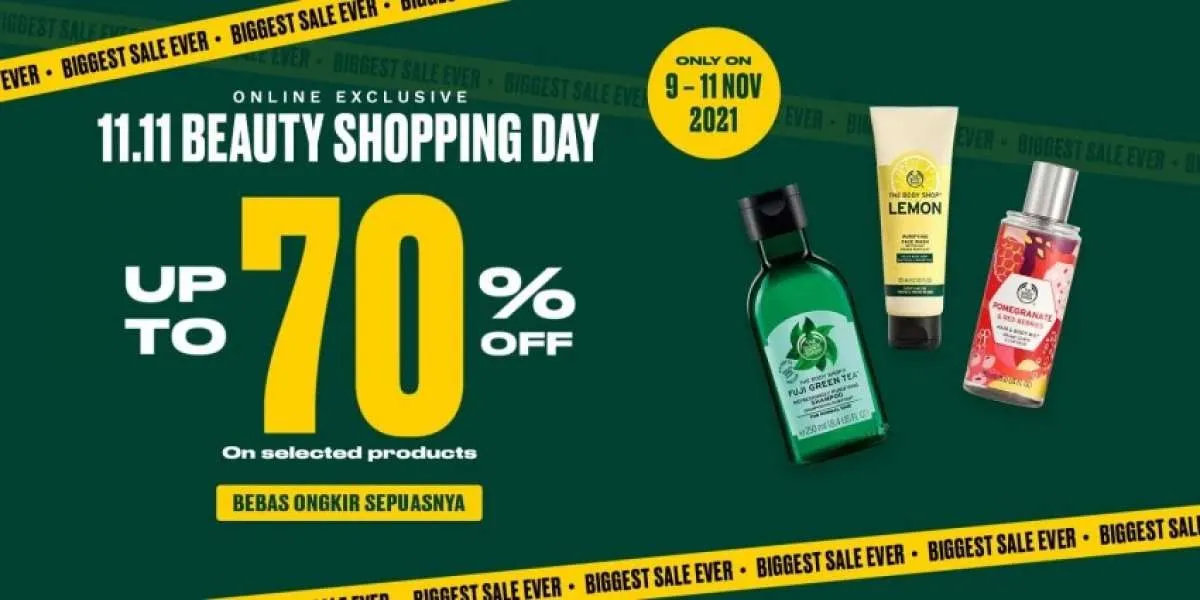 Di Tokopedia The Body Shop Indonesia, sedang ada promo 11.11 Beauty Shopping Day yang berlaku hingga tanggal 11 November 2021.