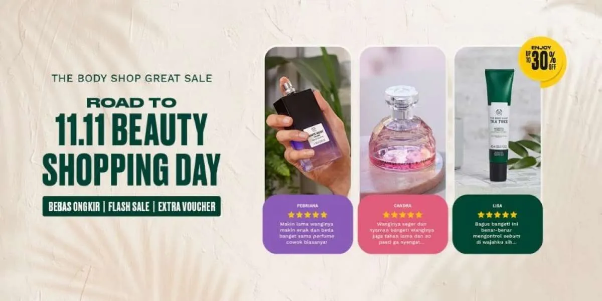 Di Tokopedia The Body Shop Indonesia, sedang ada promo The Body Shop Great Sale Road to 11.11 Beauty Shopping Day.