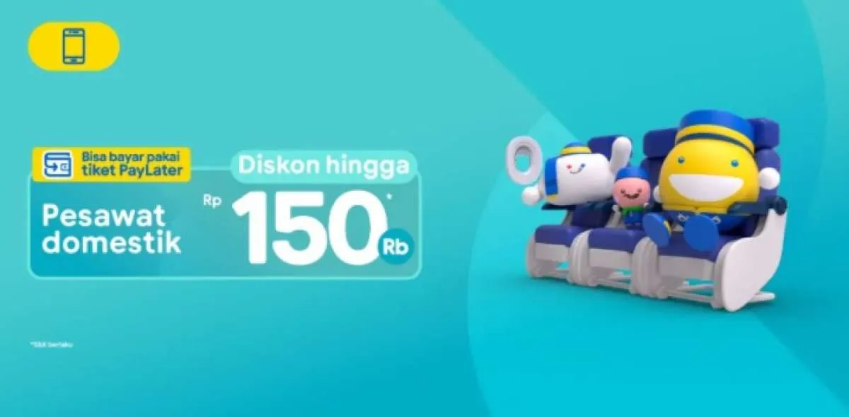 MOMSMONEY.ID - Bepergian menggunakan pesawat bisa hemat, nikmati diskon hingga Rp150.000 untuk pesawat domestik dengan pembayaran tiket PayLater. Ajak keluarga Anda berlibur mengelilingi kota-kota di Indonesia.