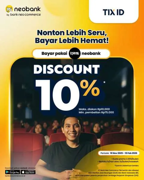 Selain itu, Anda juga bisa menikmati promo spesial lainnya dari TIX ID dengan mendapatkan diskon 10% menggunakan QRIS Neo Bank hingga 10 Februari 2026.