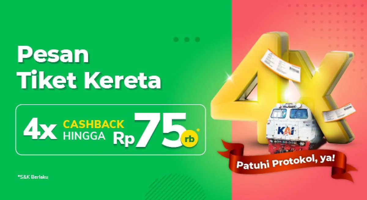 - Pengguna harus memasukkan kode promo: KERETAYUK di halaman pembayaran Tokopedia untuk mendapatkan cashback 7% hingga Rp75.000 ke Gopay Coins.