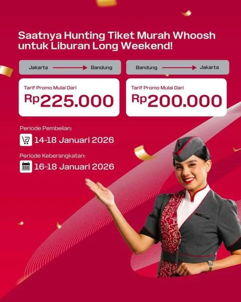 MOMSMONEY.ID - Libur Isra Miraj 2026 menjadi momen yang tepat untuk merencanakan perjalanan singkat yang praktis, nyaman, dan aman. Menyambut long weekend, Whoosh hadirkan promo spesial tiket murah untuk bikin liburan Anda makin hemat.