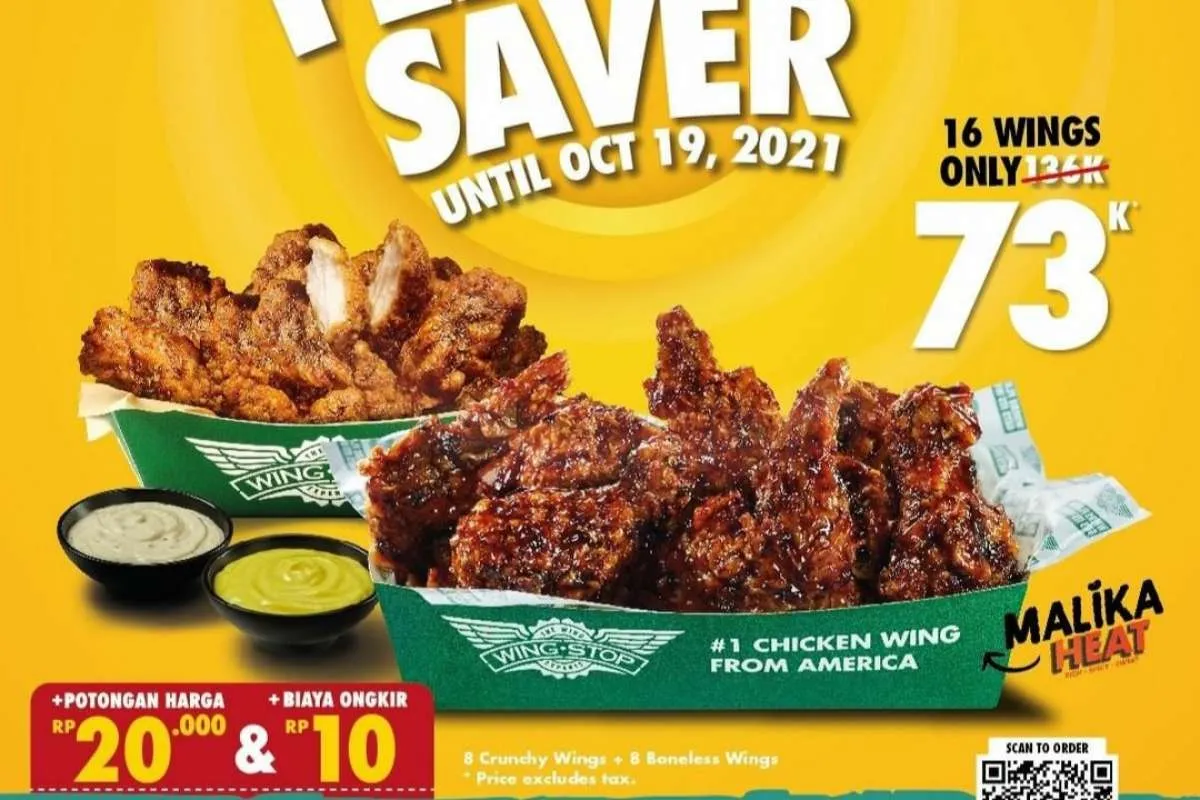 Mengutip dari Instagram resmi Wingstop di @WingstopID, promo bertajuk “Flavor Saver” berlaku dari 13-19 Oktober 2021. Pada Promo Flavor Saver ini, anda bisa membeli 16 wings ayam dengan detail menu sebagai berikut: