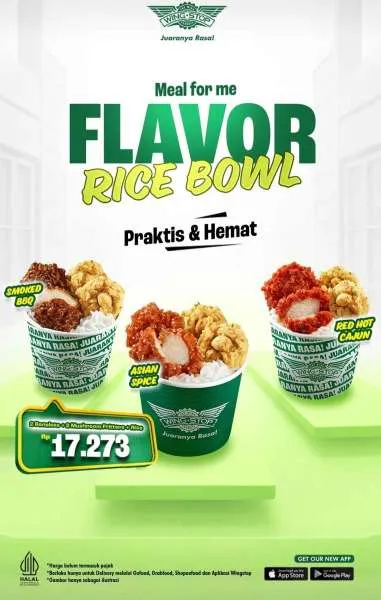 Selain itu, di Wingstop juga bisa menikmati Flavor Rice Bowl yang praktis dan hemat. Ada beragam varian spesial yang siap menemani santap Anda dengan lebih ramah kantong.