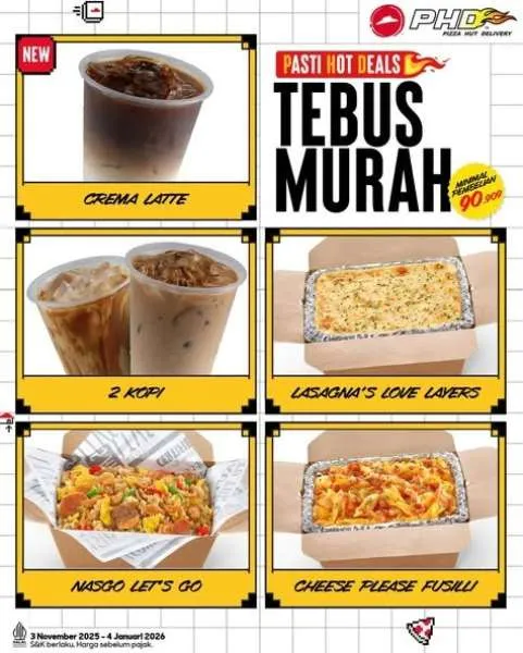 Jangan lupa ya kalau di PHD juga ada promo Tebus Murah sampai 4 Januari 2026. Ada beberapa menu pilihan yang bisa Anda tebus murah mulai Rp 27.000-an saja.