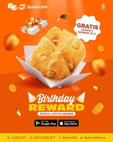 Selain itu, Bakmi GM juga lagi ada promo Birthday Reward lo. Buat Anda yang berulang tahun di bulan Desember ini, siap-siap untuk dapat Pangsit Goreng Bakmi GM gratis.