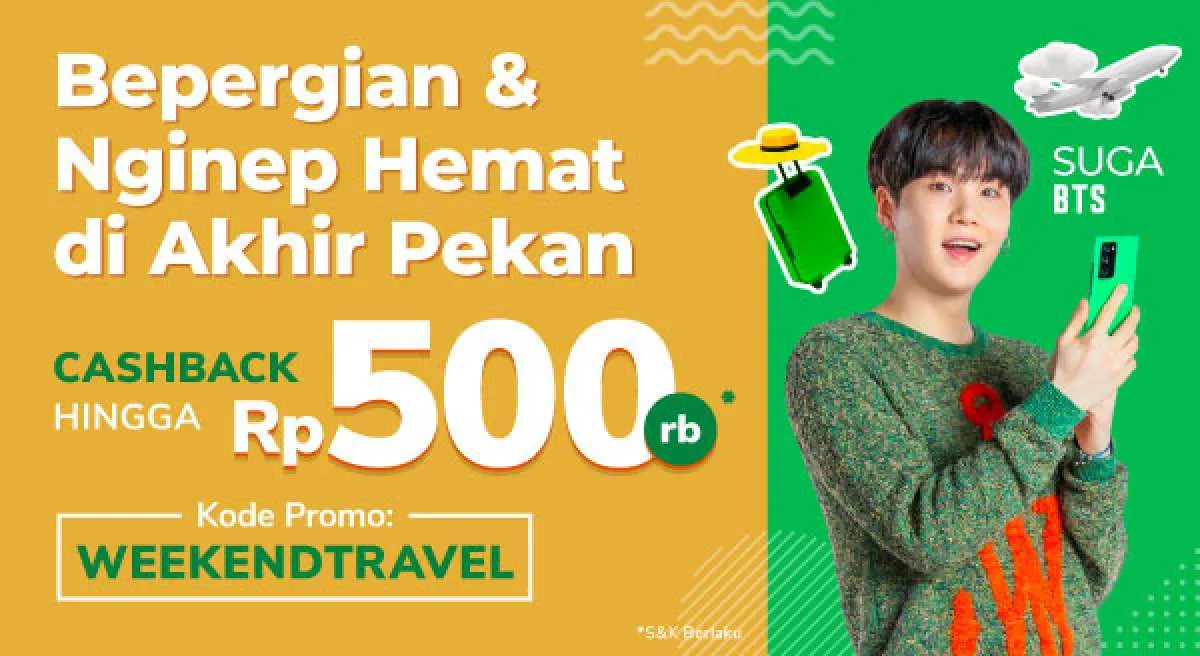 Nikmati cashback hingga Rp500.000 untuk pemesanan Tiket Pesawat, Tiket Kereta, dan Hotel dengan kode promo: WEEKENDTRAVEL. Yuk, gunakan kesempatan ini untuk liburan akhir pekan yang seru dan tetap hemat. Namun, anda harus selalu ingat untuk mematuhi protokol kesehatan!