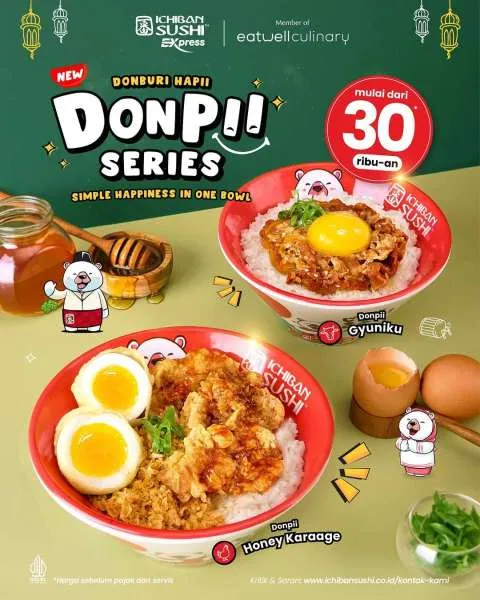 Dikutip dari Instagram @ichibansushi_id, mulai dari Rp 37.000-an saja, Anda sudah bisa mendapatkan Hapii Donburi Series. Sedangkan untuk Donpii Series mulai Rp 30.000-an saja.