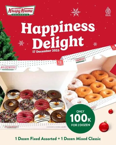 MOMSMONEY.ID - Satu hari penuh kelezatan untuk Anda dari Krispy Kreme dengan promo Happiness Delight. Dapatkan paket hemat dua lusin Dozen Donuts favorit hanya Rp 100.000 saja.