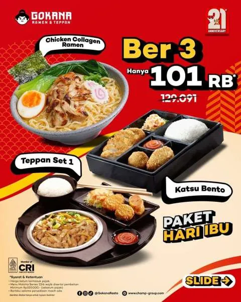 Dikutip dari Instagram @gokanaresto, promo Paket Hari Ibu menyediakan tiga menu favorit sekaligus berupa Chicken Collagen Ramen + Teppan Set 1 + Katsu Bentu hanya Rp 101.000, dari harga normal Rp 129.000-an. /2025/12/21/72918495p.jpg)