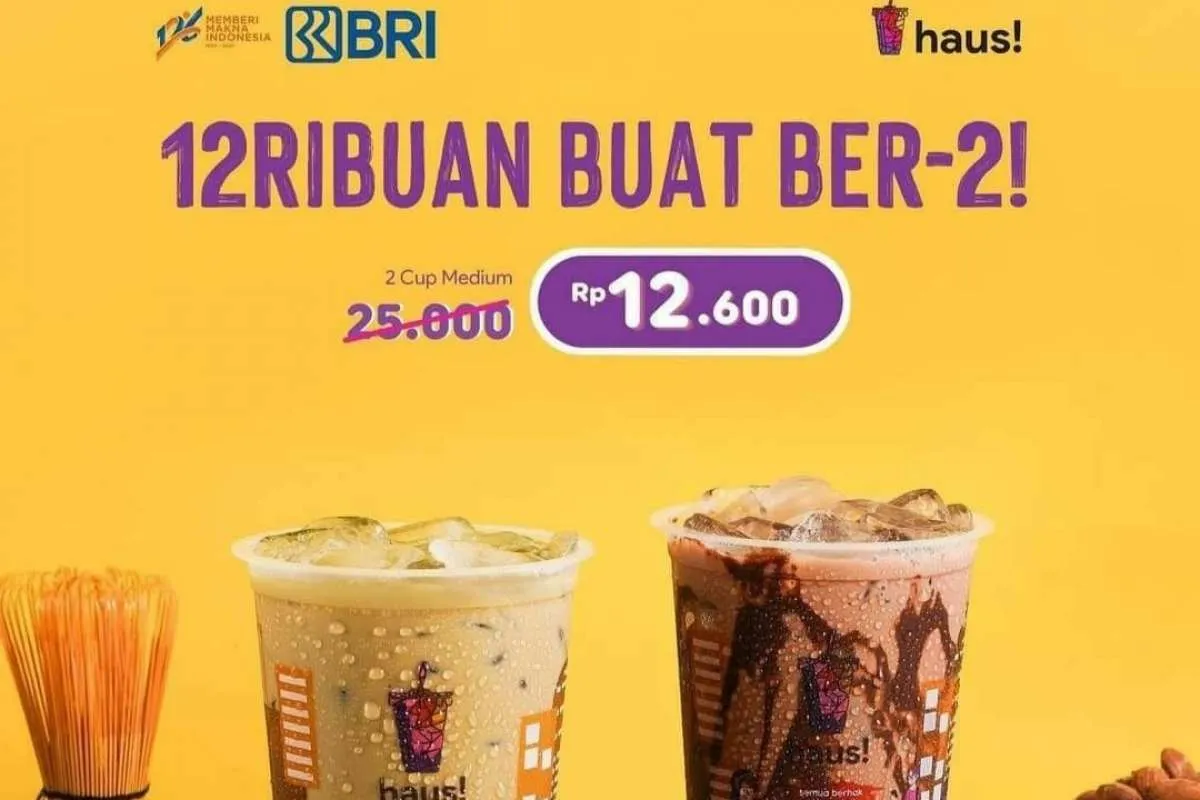 Promo Haus x BRI Beli 2 Cup Medium hanya Rp 12.600 berlaku selama periode 16-17 Desember 2021.