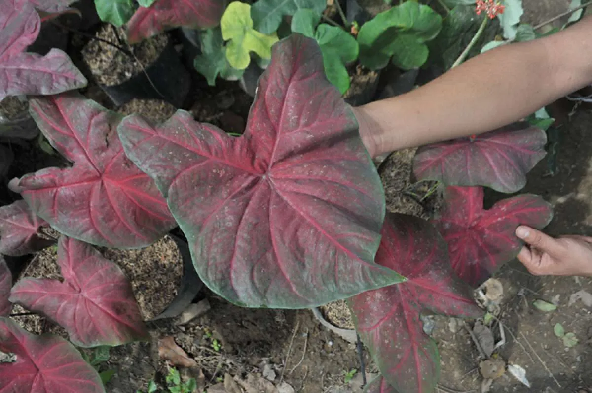 Caladium atau biasa disebut tanaman keladi dan telinga gajah, adalah tanaman hias yang populer untuk diletakkan di taman. Sayangnya, tanaman ini sangat beracun di semua bagiannya. Saat tak sengaja tertelan, tanaman ini dapat menyebabkan efek yang sama seperti tanaman sri rejeki, yakni rasa terbakar pada mulut dan tenggorokan. Efek berikutnya akan menyebabkan kesulitan bernapas, hingga kematian.