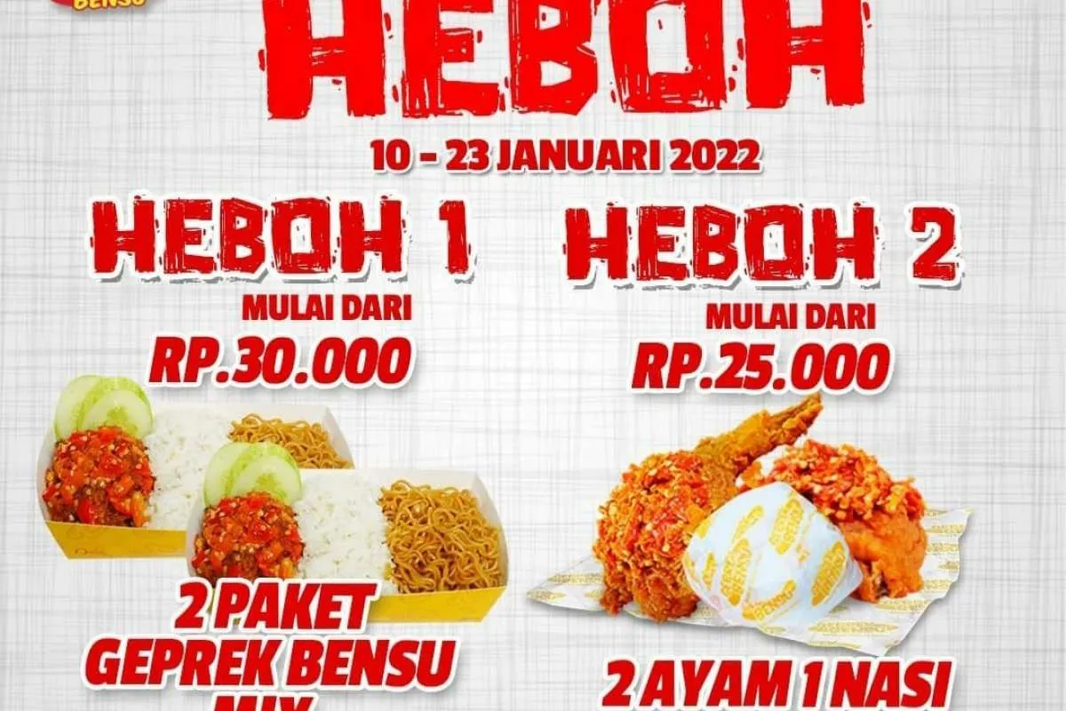 Selain itu, paket Promo Heboh dari Geprek Bensu berlaku terakhir pada 22-23 Januari 2022.