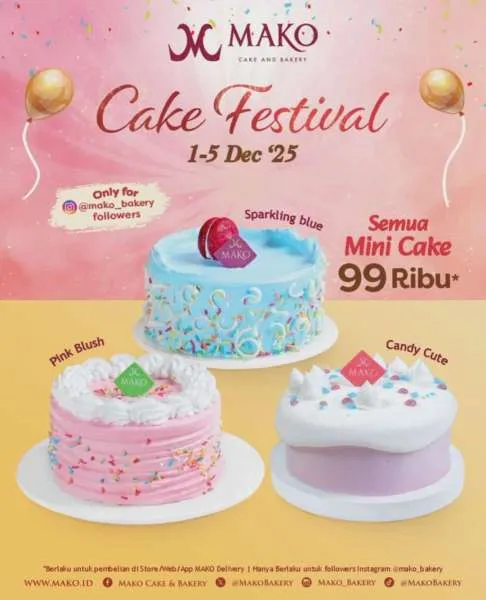 MOMSMONEY.ID - Promo Cake Festival dari Mako Bakery tinggal dua hari lo. Buat Anda yang belum ikutan berburu promonya, langsung ke Mako Bakery sekarang juga. Ada beragam kue favorit serba hemat mulai Rp 13.000 saja hingga 5 Desember 2025.