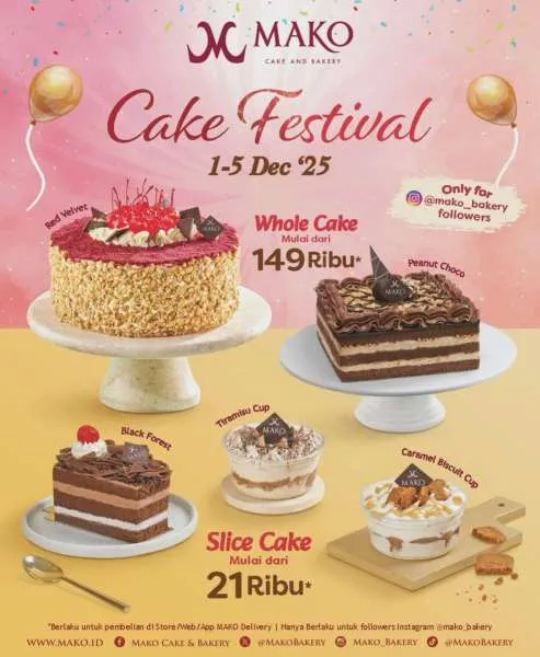 Dikutip dari Instagram Mako Bakery, berikut daftar kue hemat yang bisa Anda nikmati di promo Cake Festival: