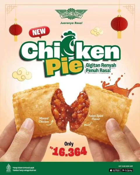 Selain itu, untuk menyambut Imlek 2026, Anda bisa sambil menikmati menu baru Wingstop berupa Chicken Pie. Camilan spesial dengan kulit yang renyah, isian daging ayam cincang dengan kombinasi cita rasa pedas dan mansi yang khas.